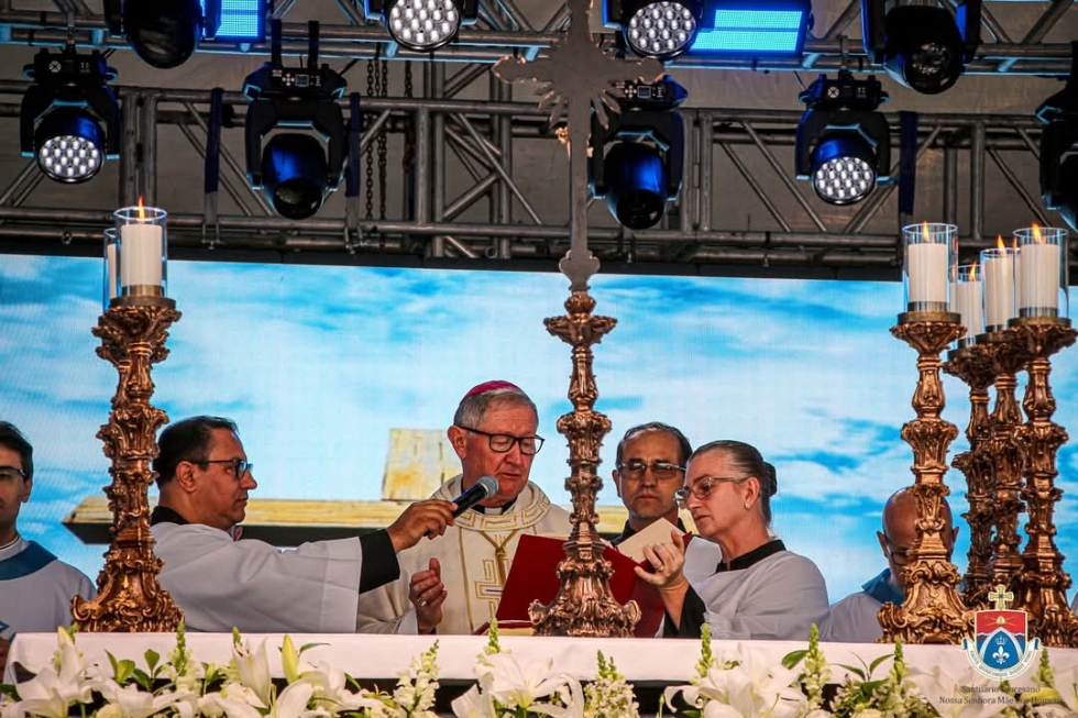 “No dia 03 acontece a coroação de Nossa Senhora. Esse é um dos momentos mais emocionantes. Neste ano, devido a quantidade de fiéis e com condições climáticas favoráveis, o evento foi ao ar livre”, destacou o pároco e reitor do Santuário, Pe. Jonas Emerim Velho.
