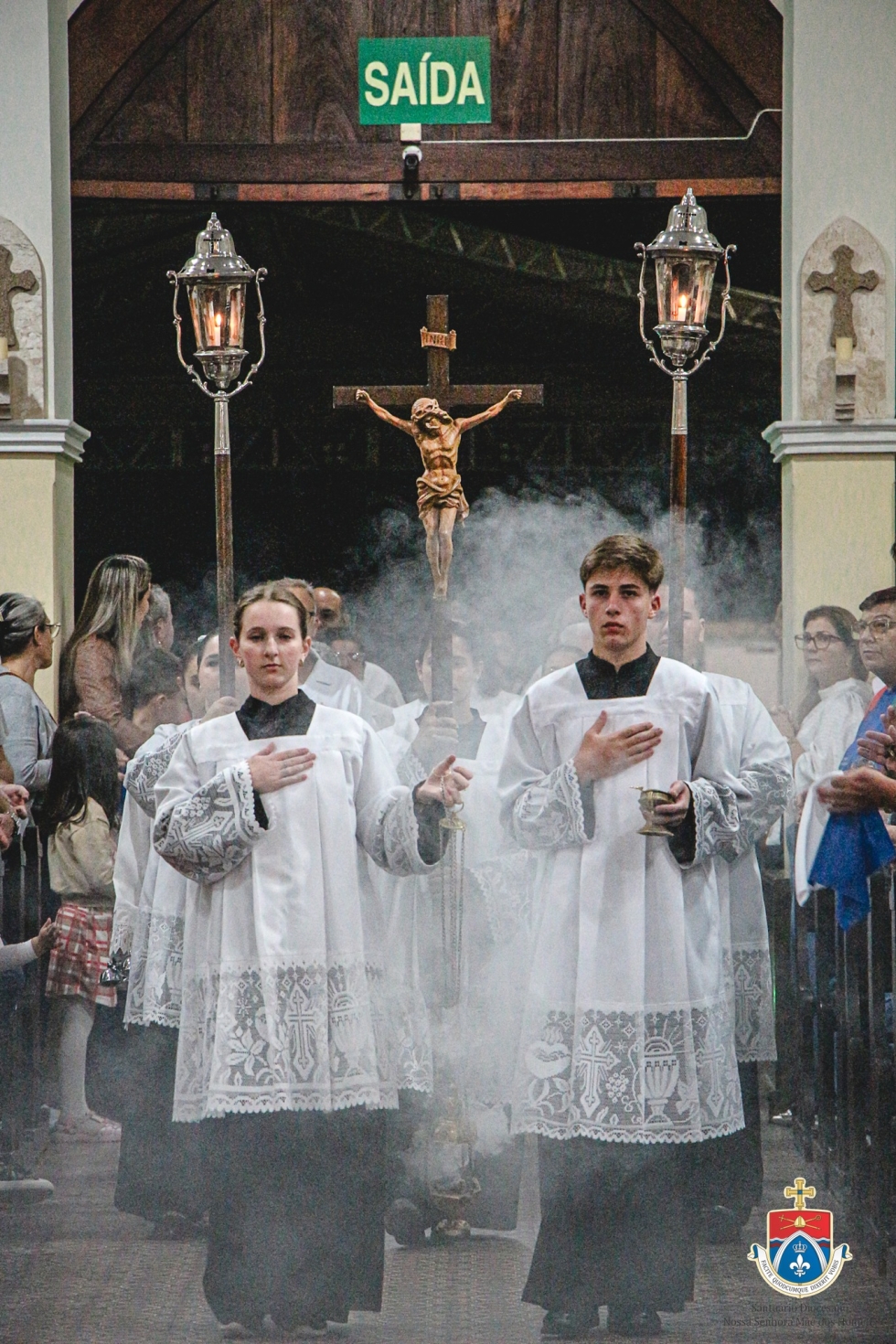 O Menino Jesus e Nossa Senhora Mãe dos Homens foram coroados depois de uma caravana pelas ruas de Araranguá. Fogos luminosos, sem ruídos, iluminaram a torre do Santuário após a coroa ser colocada na imagem.