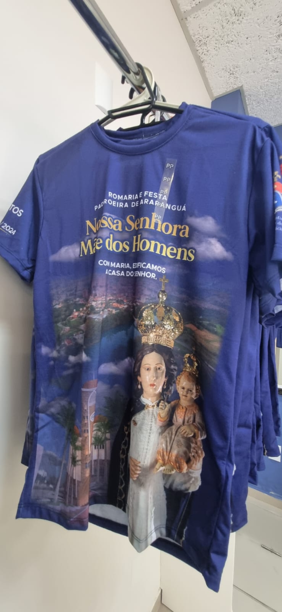 Camiseta oficial da festa de 2024 de Nossa Senhora Mãe dos Homens. Disponíveis em diversos tamanhos.